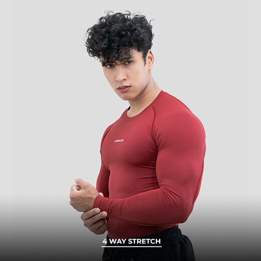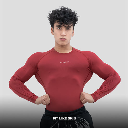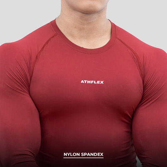 The Athflex Men's Ace Compression Body Fit Full Sleeve T-Shirt is a versatile and high-performance garment crafted from a poly-nylon spandex blend. This material composition ensures a snug, body-hugging fit that moves with you, allowing for unrestricted mobility during intense workouts or athletic activities.