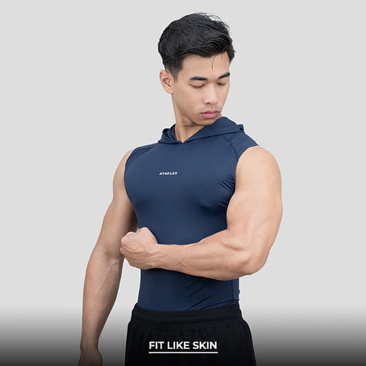 tankAssassin Compression Hoodie Tank by Athflex — designed for elite performance and intense training. Crafted from a high-stretch Nylon-Spandex blend, this sleeveless hoodie offers a powerful compression fit that sculpts your physique while enhancing performance.