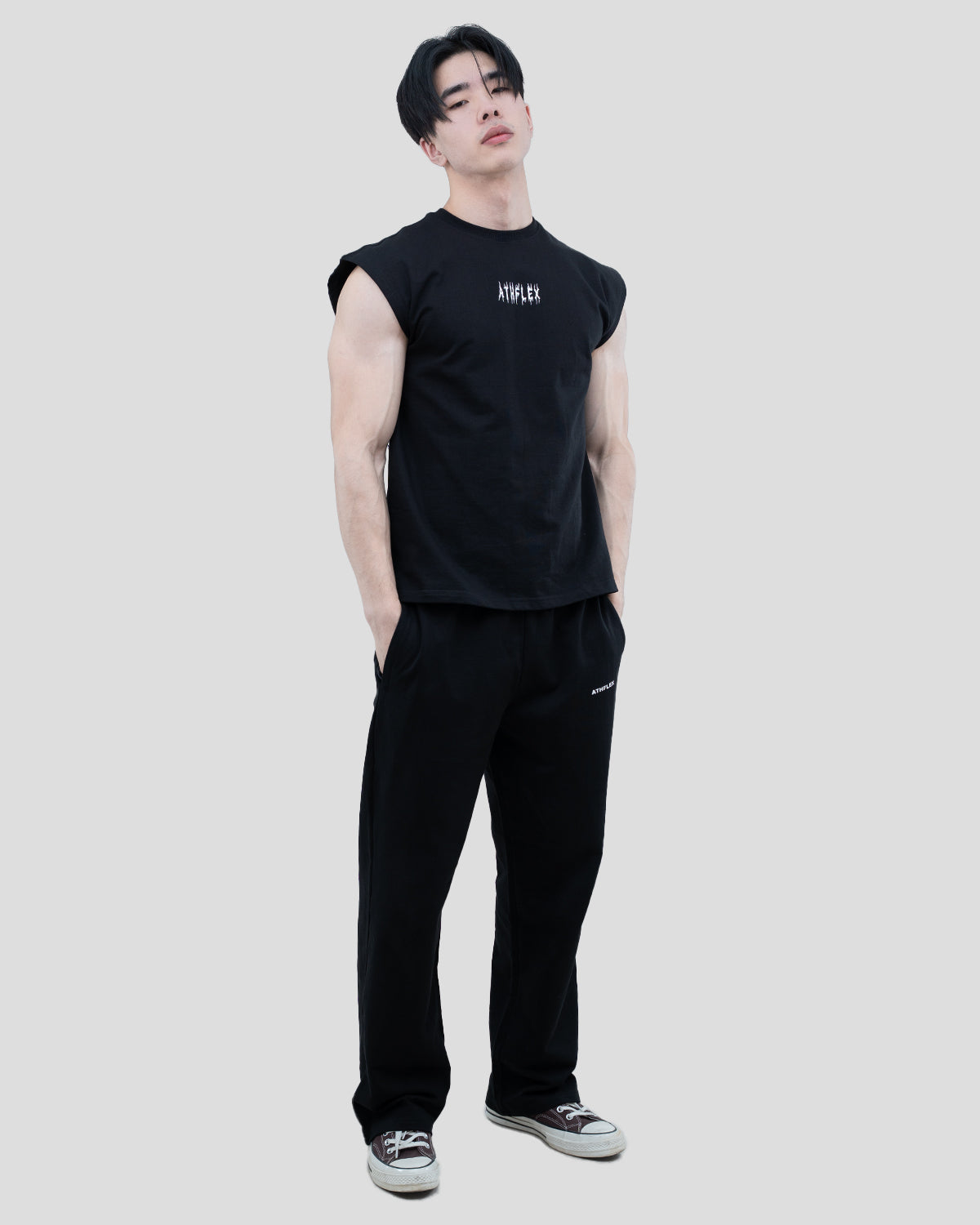 The Dark flex Boxy tank is crafted from 80% cotton- 20% Polyester, offering exceptional softness and breathability to keep you comfortable throughout the day. Its minimalist design features a sleek black base accented by the bold Athflex logo on the chest, making it a perfect blend of simplicity and style.