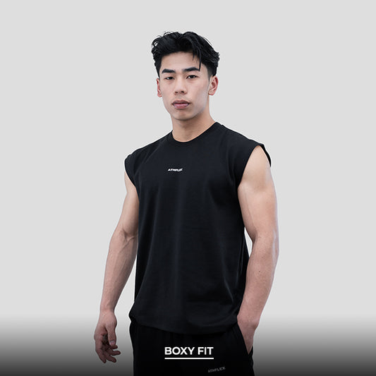 The ELEVATE Boxy tank is crafted from 80% cotton- 20% Polyester , offering exceptional softness and breathability to keep you comfortable throughout the day. Its minimalist design features a sleek black base accented by the bold Athflex logo on the chest, making it a perfect blend of simplicity and style.