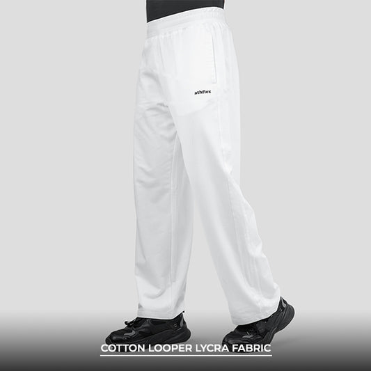 Stride Straight Pants are your ultimate companion for performance and comfort. Designed with a premium blend of Cotton Looper Lycra, these pants deliver exceptional softness, stretch, and breathability—ideal for workouts or off-duty days.